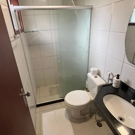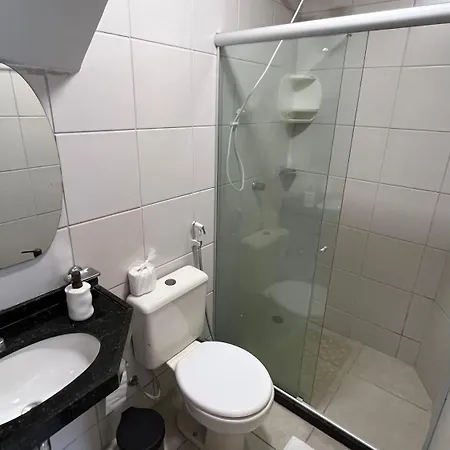 Chale No Prive Monte Serrat Com 3 Quartos Em Gravata villa comes with a bathroom with a separate toilet and a shower. There are a hairdryer and bath sheets for guests' comfort.